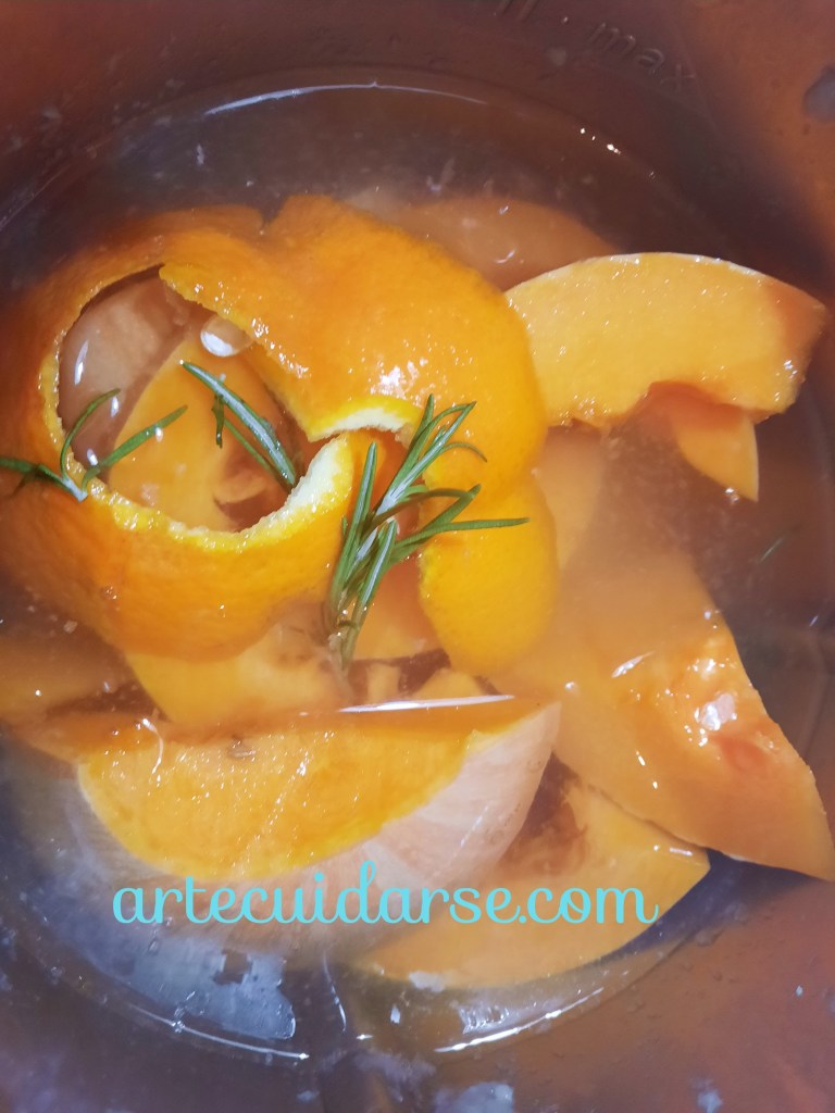 Su ingrediente principal es la calabaza, rica de carotenoides, en especial betacaroteno. La cáscara de naranja y el romero durante la cocción le dará un toque aromático muy especial.