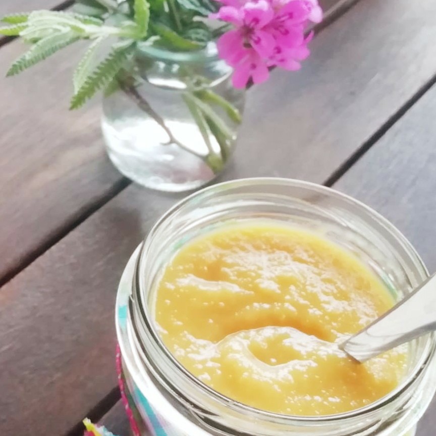 - Cuando la manzana esté hecha, tritúrala para que quede como un puré.